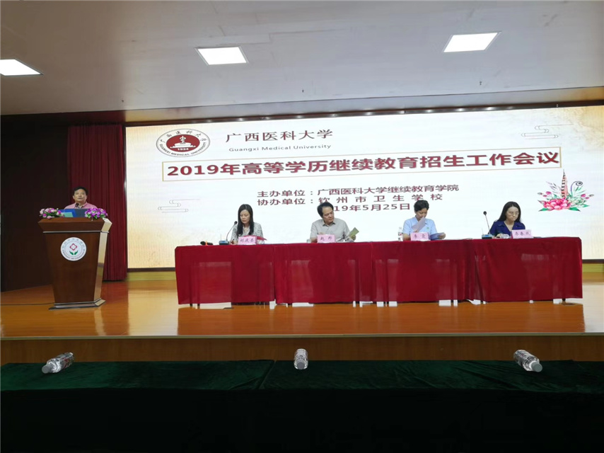 5月25日,廣西醫(yī)科大學(xué)2018年高等學(xué)歷繼續(xù)教育招生工作總結(jié)及2019年招生工作部署會議在欽州市衛(wèi)生學(xué)校隆重舉行,廣西醫(yī)科大學(xué)繼續(xù)教育學(xué)院院長趙邦教授、副院長劉慶委、李春燕以及各市衛(wèi)校、合作醫(yī)院教學(xué)站負(fù)責(zé)人和老師70多人參加了會議,會議由劉慶委副院長主持。