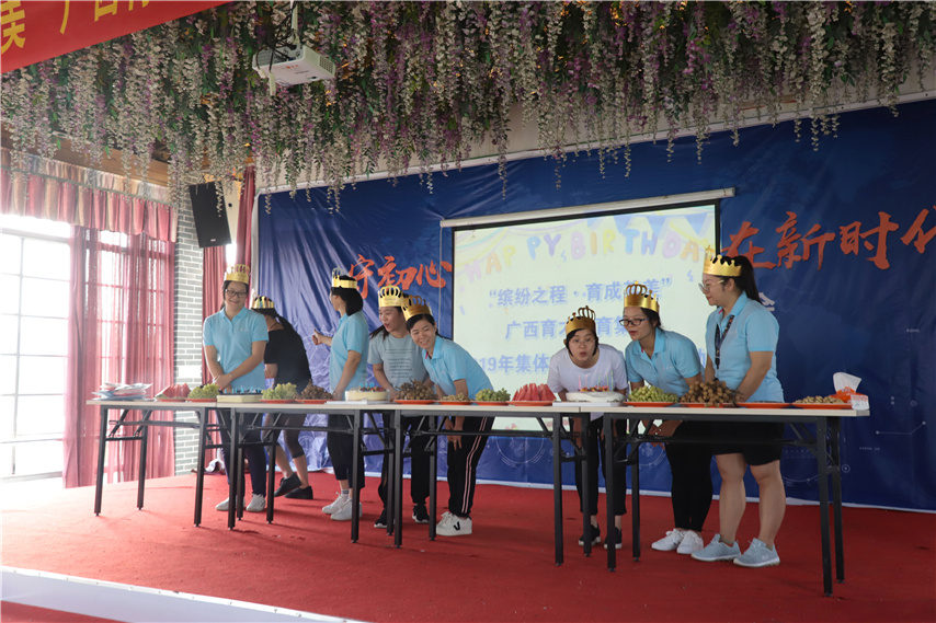 8月12日,“繽紛之程·育成其美”廣西育才教育集團(tuán)2019年集體生日會(huì)暨團(tuán)建活動(dòng)在柳州綠瀾·太陽河生態(tài)園歡樂舉行。集團(tuán)聯(lián)合黨委紀(jì)檢委員、副總經(jīng)理李彩梅、集團(tuán)工會(huì)主席、聯(lián)合黨委宣傳委員、副總經(jīng)理王麗以及70余名教職員工參加了活動(dòng)。本次活動(dòng)特別邀請魚峰區(qū)總工會(huì)副主席伍良同志、魚峰區(qū)兩新組織黨工委黨建組織員楊培參與指導(dǎo)育才黨建引領(lǐng)工會(huì)的建設(shè)?;顒?dòng)由集團(tuán)工會(huì)主辦。
