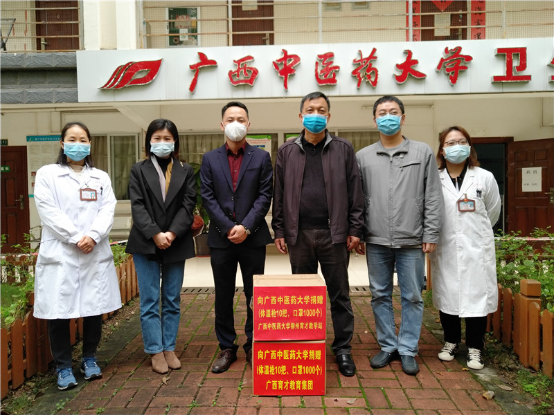 ▲向廣西中醫(yī)藥大學(xué)捐贈(zèng)體溫槍、口罩
