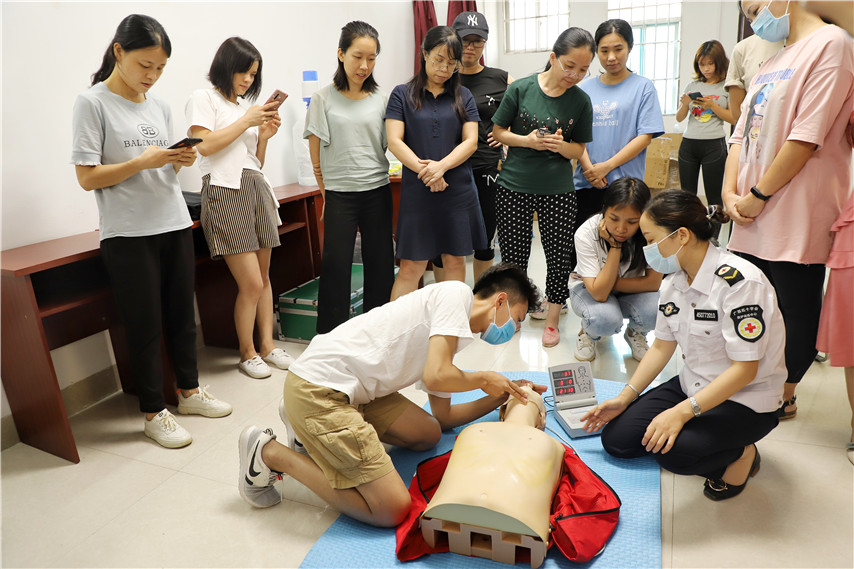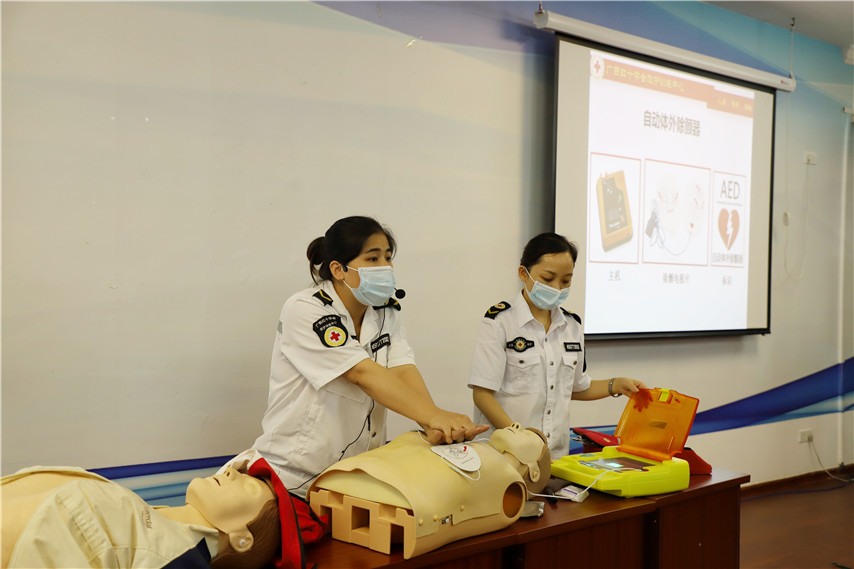 此次培訓(xùn),由廣西紅十字會(huì)救護(hù)訓(xùn)練中心授課。培訓(xùn)課以理論講授、操作示范、案例分析的形式,救護(hù)講師從專業(yè)的角度,向?qū)W員們?cè)敿?xì)介紹了紅十字運(yùn)動(dòng)基本知識(shí),人道救護(hù)理念。從現(xiàn)場(chǎng)救護(hù)的處理程序、徒手心肺復(fù)蘇技術(shù)、創(chuàng)傷救護(hù)的方法與步驟、骨折處理、氣道異物梗阻的緊急救護(hù)等方面進(jìn)行講解并結(jié)合操作示范,重點(diǎn)介紹了徒手心肺復(fù)蘇、AED的操作方法,同時(shí)分步講解了每個(gè)步驟及操作中應(yīng)要注意的事項(xiàng),學(xué)員們也親身體驗(yàn)了心肺復(fù)蘇、傷口包扎操作步驟、氣道異物梗阻處理方法。