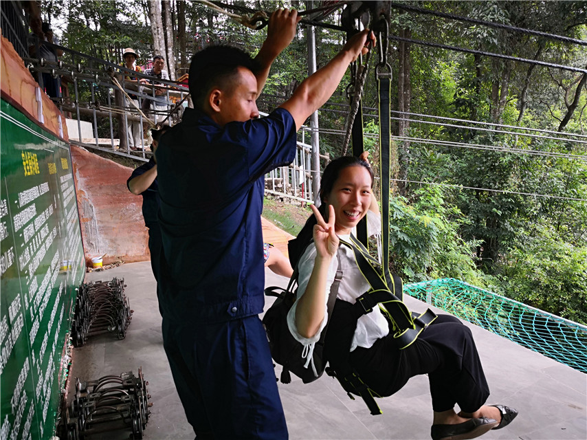 在此次活動(dòng)中,設(shè)置了創(chuàng)意造型比賽和趣味抖音短視頻拍攝比賽,劈叉、心形、雙V、樂(lè)搞、戲精……多才多藝的育才人,把雙龍溝懸索玻璃橋變得多姿多彩,團(tuán)隊(duì)隊(duì)員們還結(jié)對(duì)體驗(yàn)了驚險(xiǎn)的高空滑索項(xiàng)目,進(jìn)一步開(kāi)發(fā)自身的潛力,歡樂(lè)不斷,收獲不停。